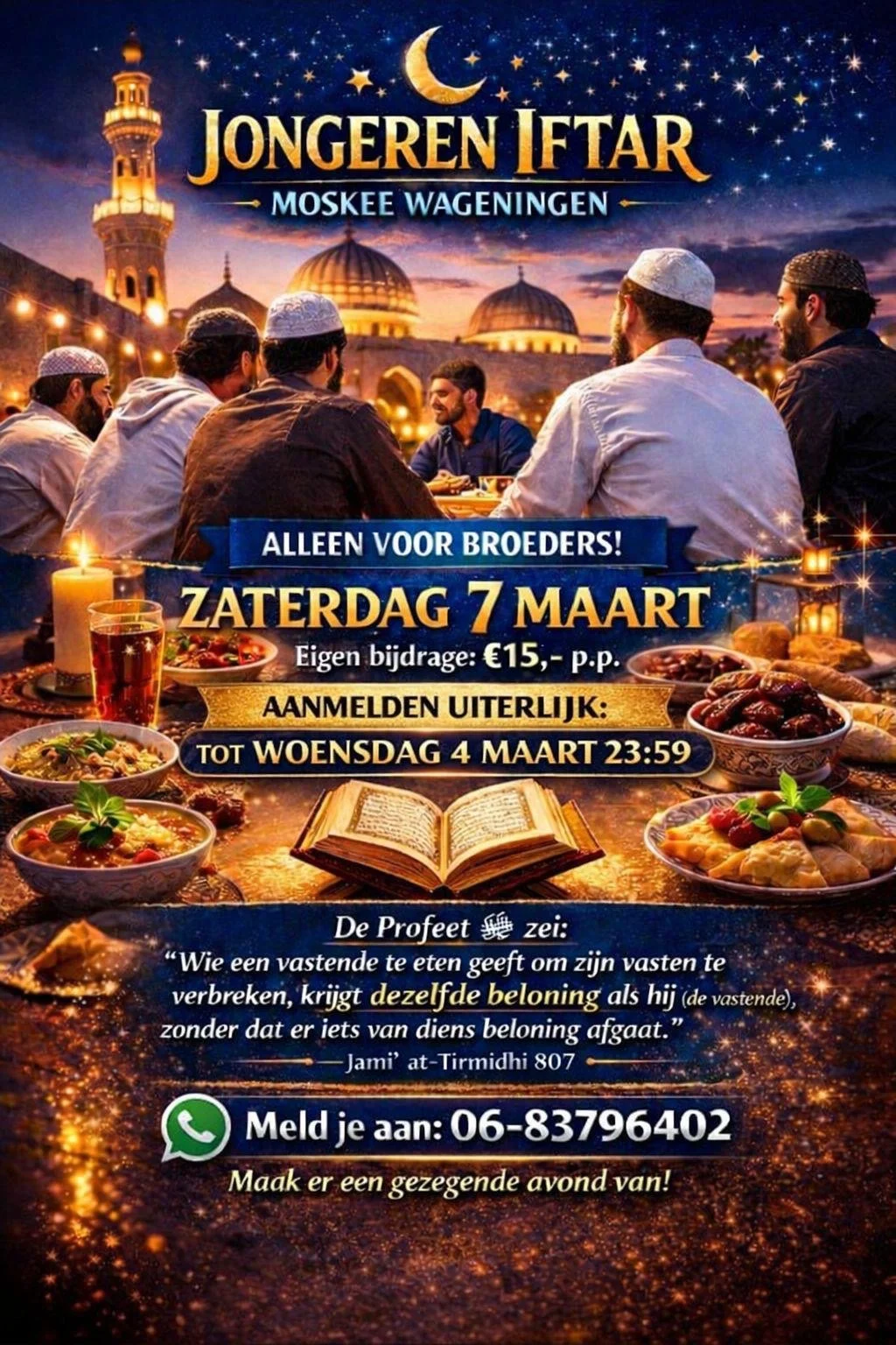 We organiseren een jongeren iftar in Moskee Wageningen op zaterdag 7 maart. Dit is een initiatief van en voor jongeren.